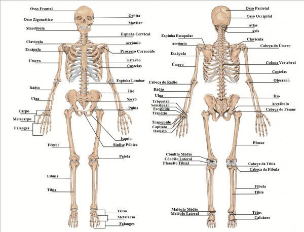 - Posteriores (Patas) constan de fémur (Muslo); tibia y peroné (Pierna); tarso y metatarso soldados (Pie) y las falanges (Esqueleto de los 4 dedos). El Peroné, delgado como un estilete, presenta la extremidad inferior libre, sin articuarse. Los miembros posteriores se unen a la columna vertebral mediante la cintura pélvica , integrada por el Isquión y el Íleon unidos, y por el pubis, soldados todos a la región lumbosacra, siendo huesos pares.