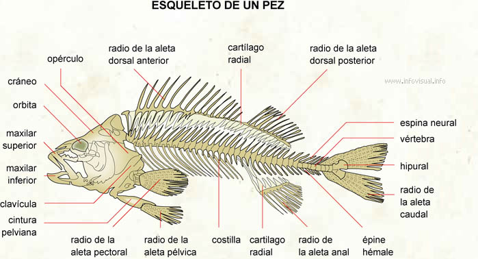 Vértebra: cada uno de los huesos que forma espina neural del pez.